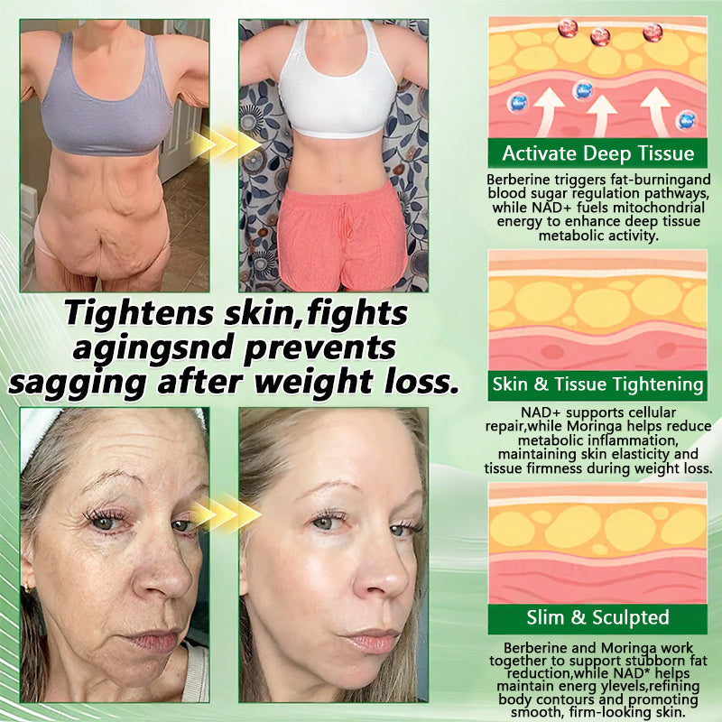 • NAD+ & Collagen Peptides: Boost cellular energy and skin firmness, helping you look toned and tight as your body transforms.